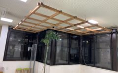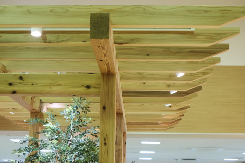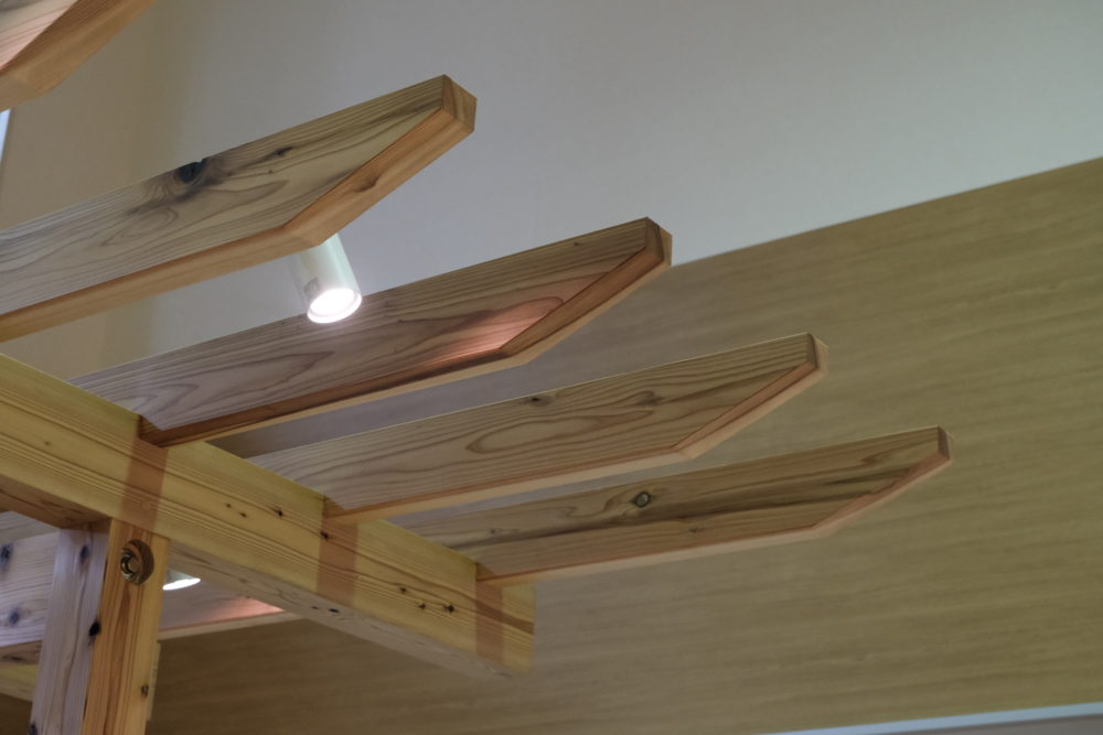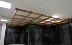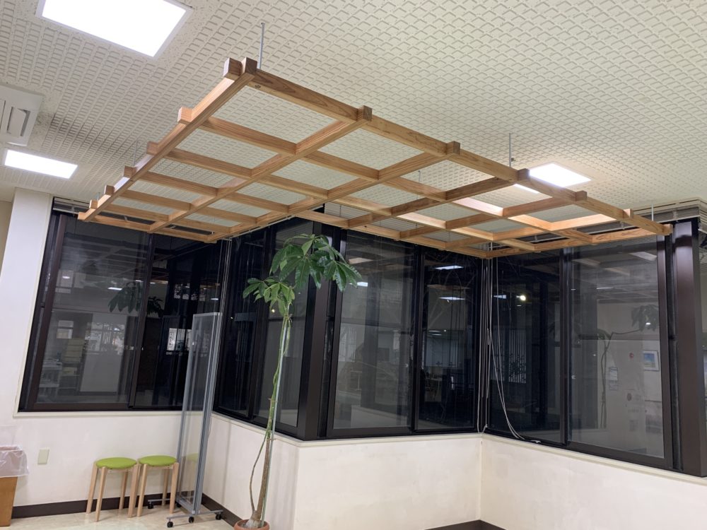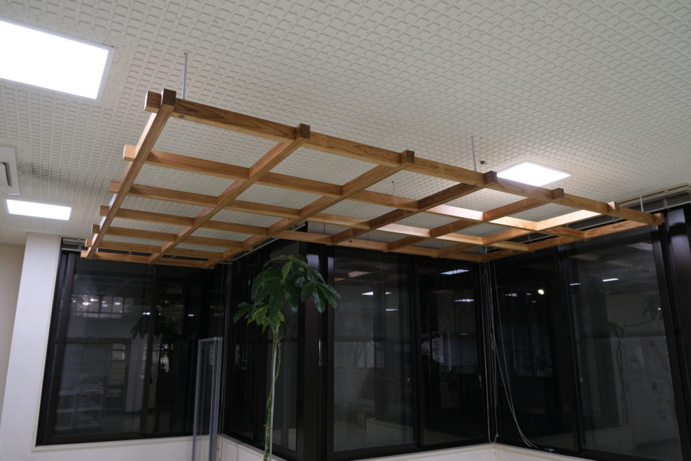 木材で格子天井を設置。