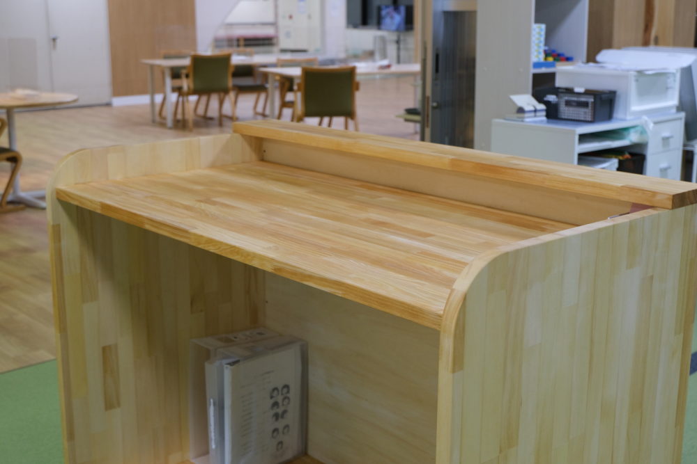 もともとの大きな施設用テーブルやチェアは、