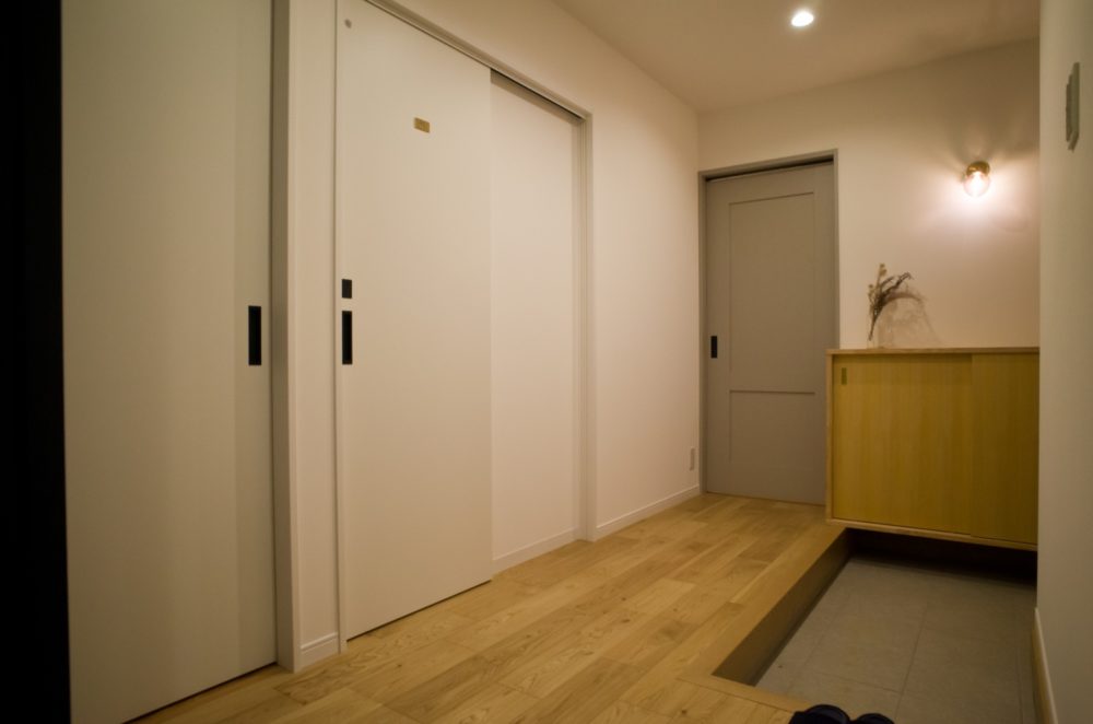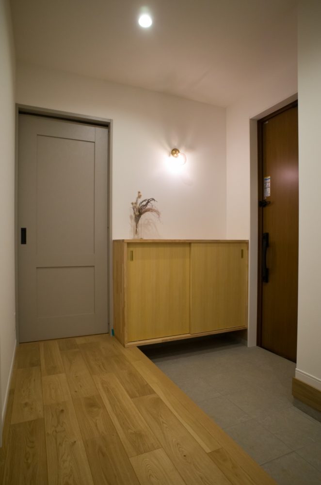 靴の脱ぎ履きがしやすく、冬にはストーブを置けるよう