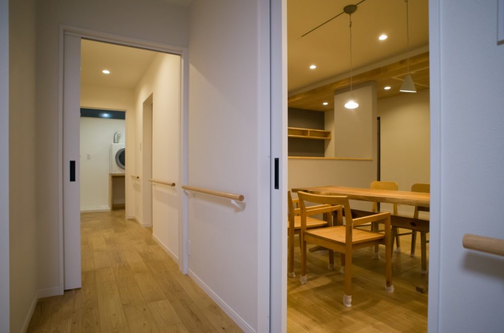 リビングから寝室、トイレ、ランドリーまでの廊下は