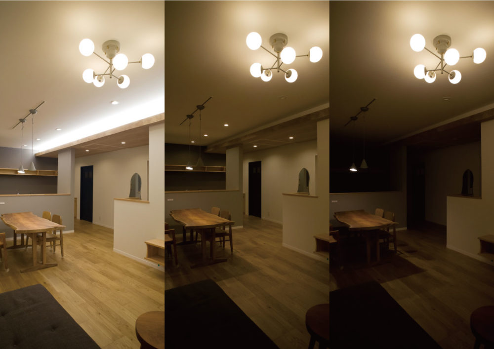 照明を引き算することで、同じ部屋で様々な印象の空間に。