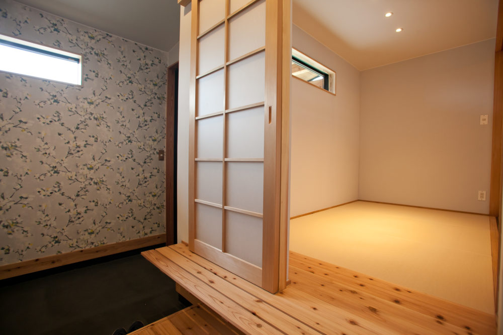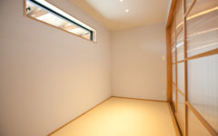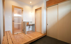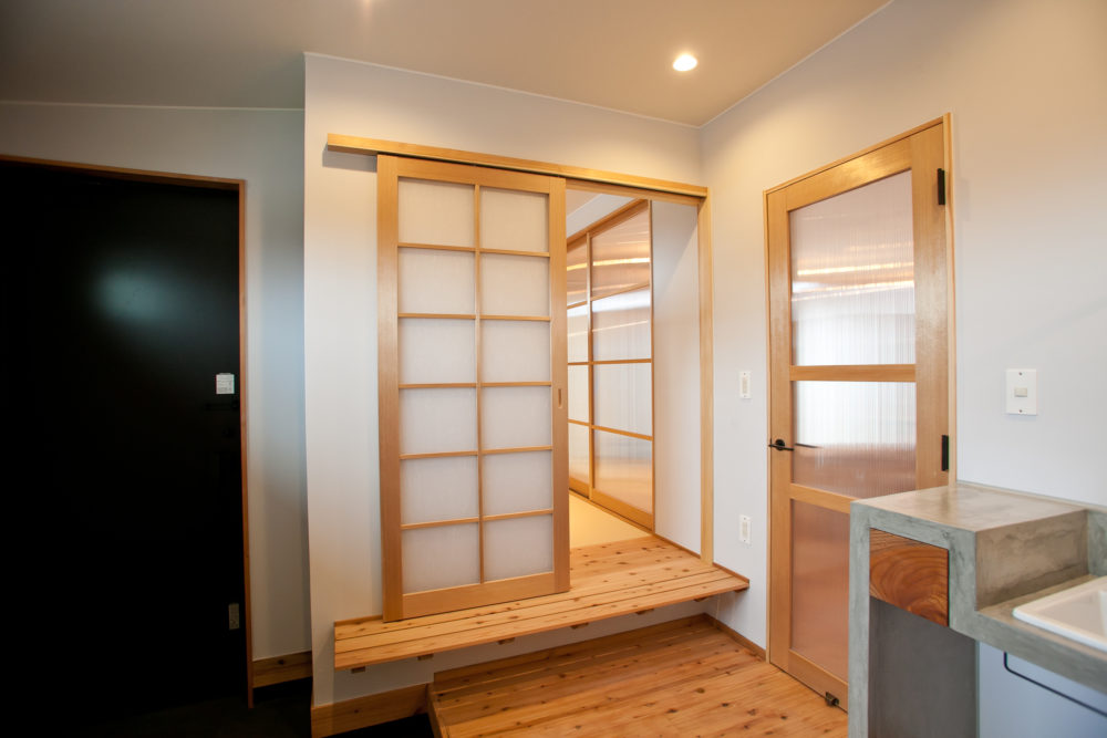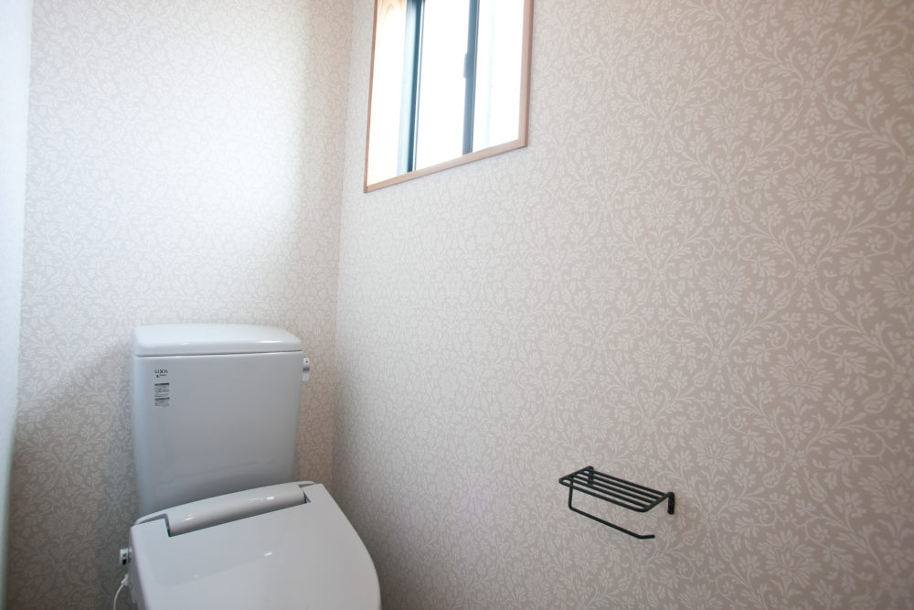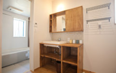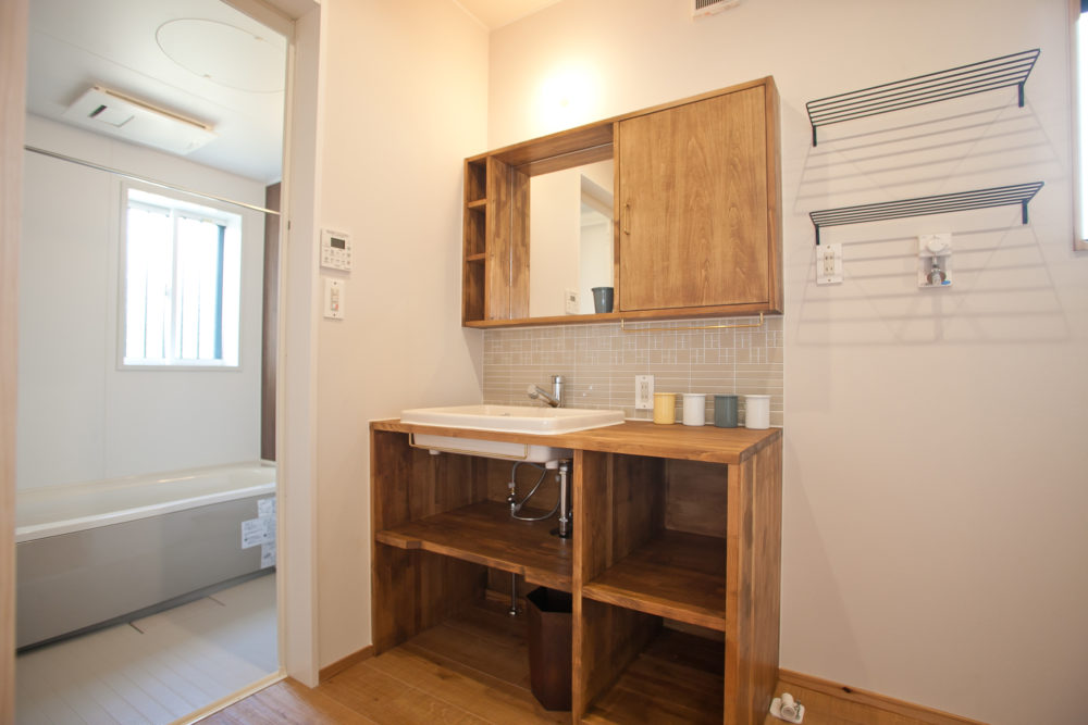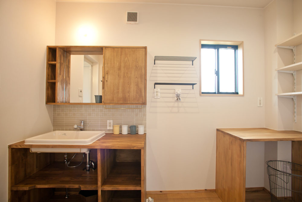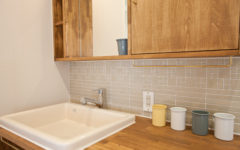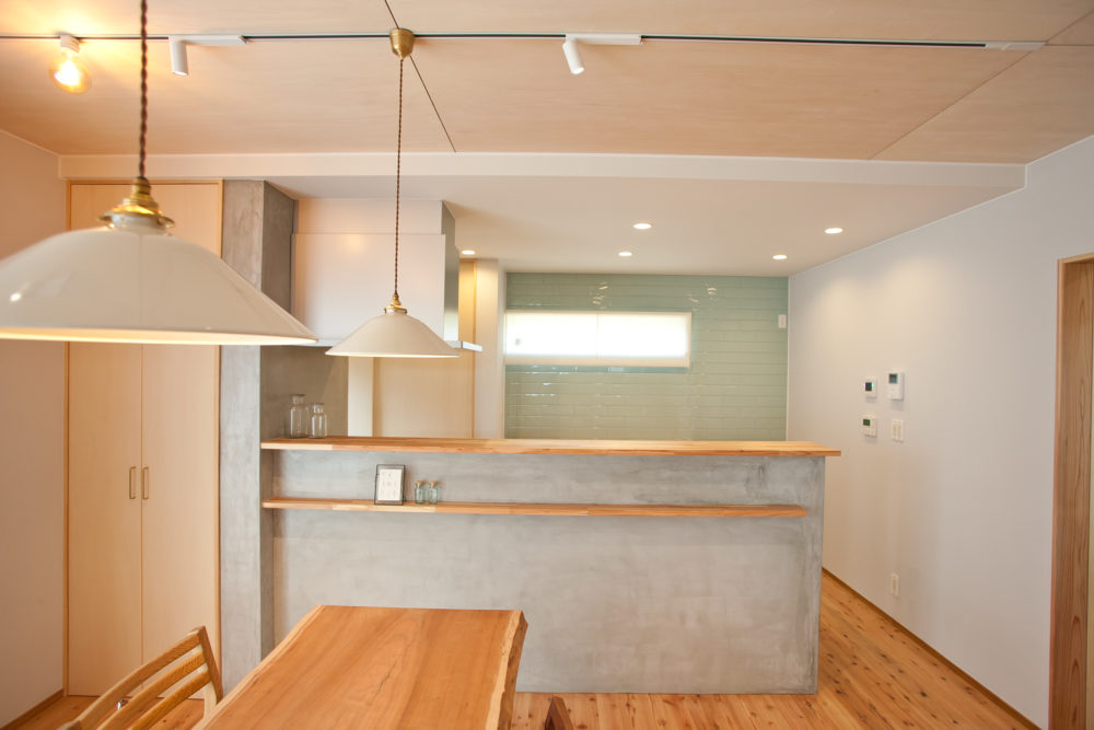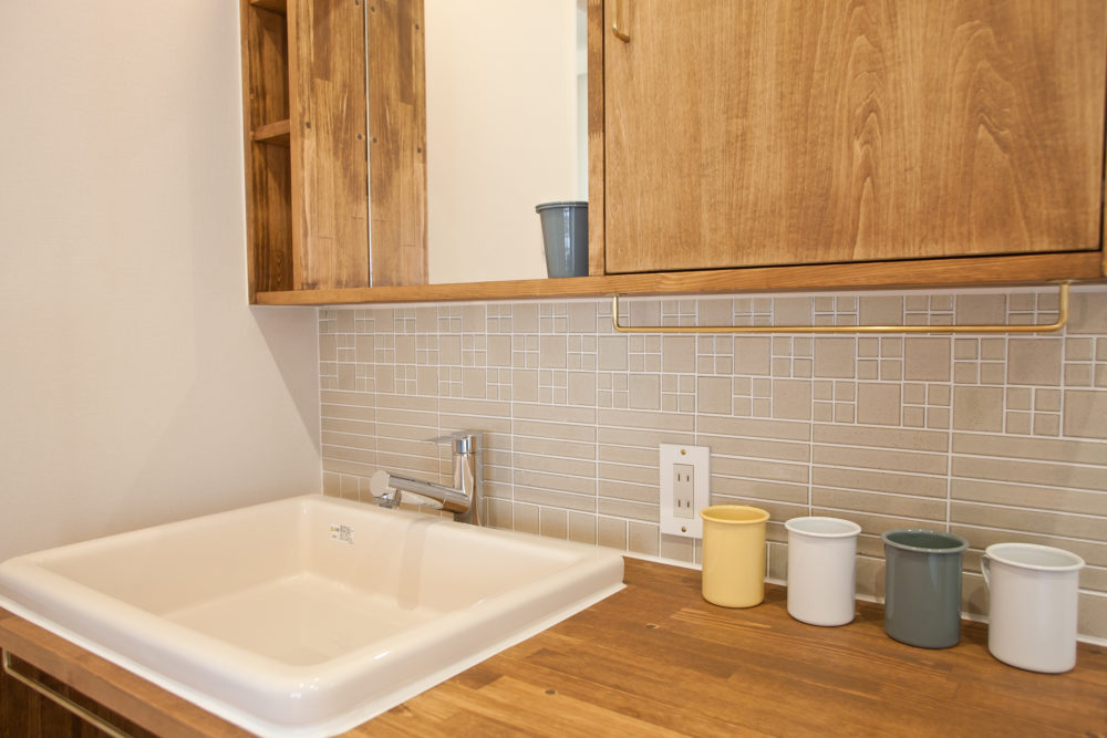 壁は抗菌効果のあるアレス漆喰を使用。ペールグレーの落ち着いたカラーリングです。